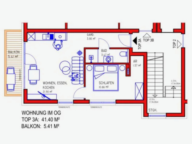 • Top 3A Gut geschnittener Grundriss