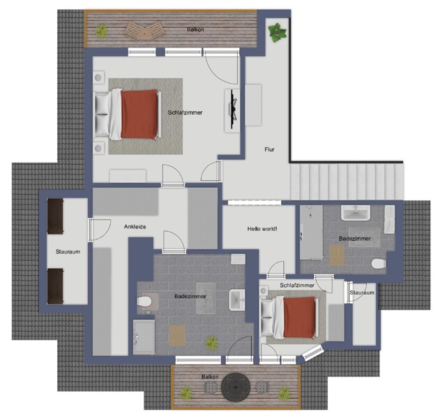 Der Zugang zum weitläufigen Balkon führt direkt auf die beeindruckende Terrasse von ca. 80 m². Diese bietet viel Platz für Veranstaltungen und gemütliche Abende, und am Rande lädt ein kalifornischer Whirlpool zur Entspannung ein. Die Terrasse bietet optimale Gelegenheiten für gesellige Grillabende mit Familie und Freunden.