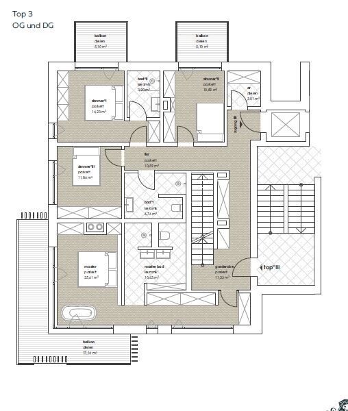 Die umfangreiche Balkon- und Terrassenfläche von 95,03 m² in südlicher, westlicher und südwestlicher Ausrichtung verspricht sonnige Stunden den ganzen Tag lang. Gestalten Sie Ihren eigenen Außenbereich und nutzen Sie die Möglichkeit, den idealen Rückzugsort im Freien zu verwirklichen.