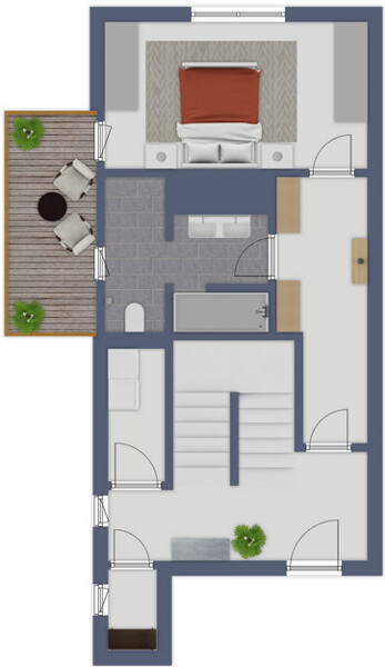 Auf insgesamt zwei Etagen präsentiert sich die Wohnung mit 2 geräumigen Schlafzimmern und 2 modernen Badezimmern, wobei Ihnen die Freiheit geboten wird, die Badezimmer nach Ihrem eigenen Geschmack zu gestalten. Für zusätzliche Bequemlichkeit steht ein Gäste-WC zur Verfügung. Die Auswahl edler Holzdielen und stilvoller Fliesenböden verleiht der Wohnung Eleganz und Wärme und kann nach Ihren individuellen Wünschen angepasst werden.