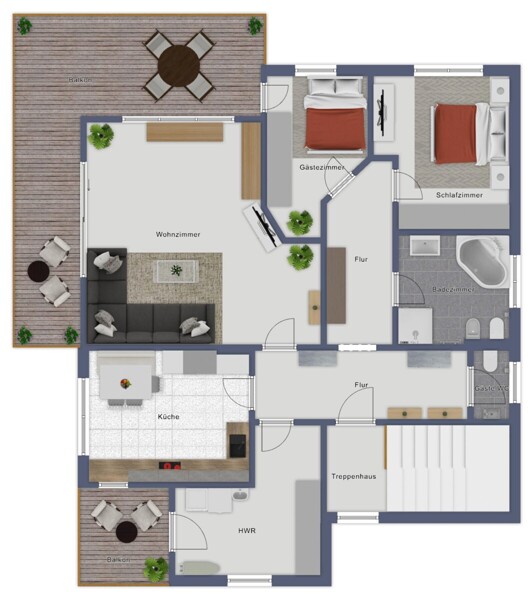 Stellen Sie sich vor, wie die ersten Sonnenstrahlen des Tages sanft auf die Terrasse fallen und Ihre Kinder dort voller Begeisterung das sonntägliche Frühstück vorbereiten. Der Duft von frischgebackenem Brot und aromatischem Kaffee erfüllt die Luft, während Sie den Morgen in vollen Zügen genießen. Am Abend lädt die gleiche Terrasse, ausgerichtet nach Nord, Ost, Süd und Südwest, dazu ein, den Tag entspannt bei einem Glas edlen Rotweins ausklingen zu lassen und in die funkelnden Sterne am Nachthimmel zu blicken.