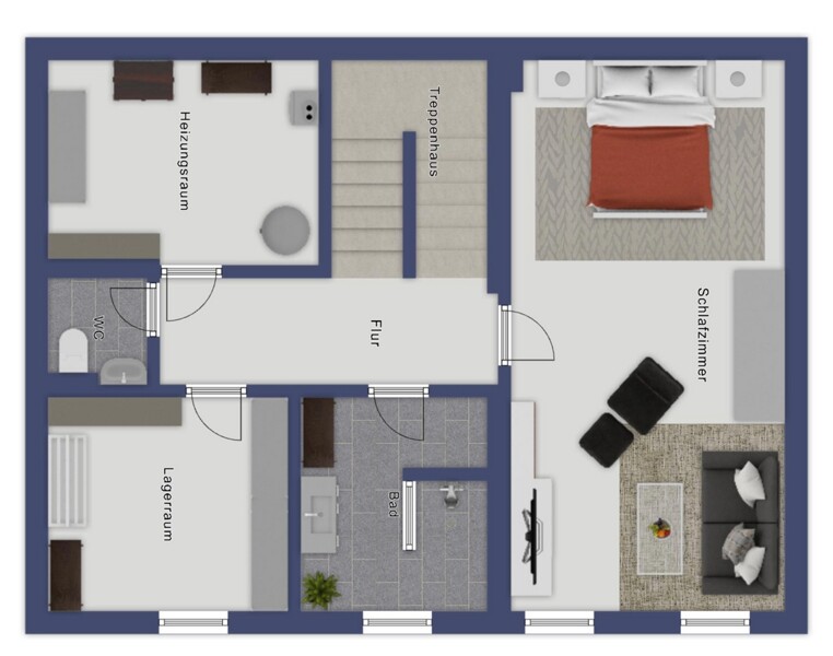 Im Untergeschoss eröffnen sich vielfältige Nutzungsmöglichkeiten: Ein großzügiger Mehrzweckraum eignet sich ideal als Wellnessbereich, Fitnessraum oder zusätzliches Schlafzimmer. Ergänzt wird diese Etage durch ein weiteres Badezimmer sowie mehrere Abstellräume mit reichlich Stauraum.