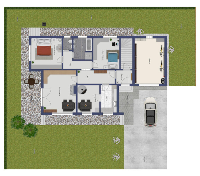 Praktisch und wertvoll: Das Haus ist unterkellert und bietet dadurch zusätzlichen Stauraum und Nutzungsmöglichkeiten. Eine Garage sowie eine grosszügige Einfahrt runden das Angebot ab – hier können mehrere Fahrzeuge bequem parken.