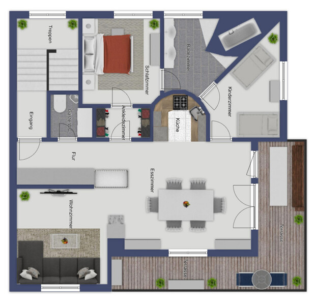 | Bad | Wanne, Fenster, Doppelwaschtisch |