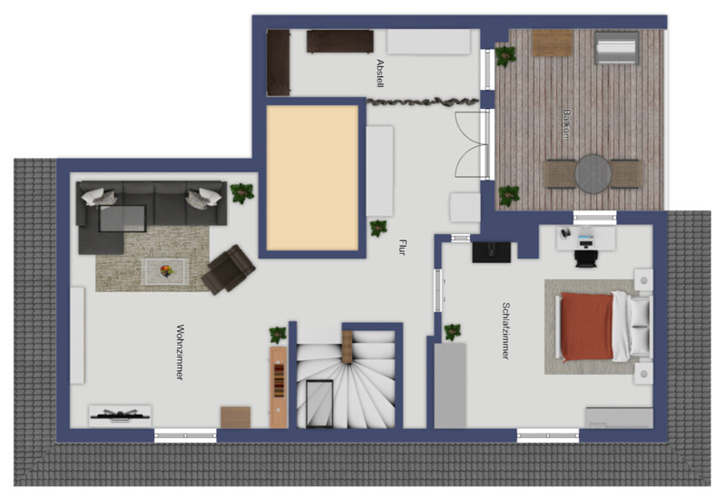 Schon beim Eintreten spürt man die besondere Atmosphäre: die offene Raumwirkung unter dem Dach, die hochwertige Ausführung und das natürliche Licht schaffen ein Wohngefühl, das zugleich elegant und gemütlich ist. Der sichtbare Dachstuhl verleiht Charakter und eine unverwechselbare Handschrift – wie man sie nur selten findet.