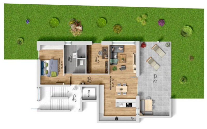 • Möblierter 2D-Grundriss