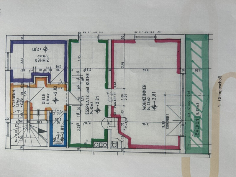 Im 1. Obergeschoss empfängt Sie ein praktischer Eingangsbereich mit Gäste-WC. Ein flexibel nutzbares Zimmer eignet sich hervorragend als Büro, Gästezimmer oder Kinderzimmer. Die geräumige Küche ist mit Einbauten ausgestattet und verfügt über ein Granderwasser-Belebungssystem – ein Detail, das viele im täglichen Leben nicht mehr missen möchten. Der Wohnbereich überzeugt mit Parkettboden, einer grossen Fensterfront mit Aussenrollos sowie einem gemütlichen Kachelofen, der nicht nur Atmosphäre schafft, sondern auch als Zusatzheizung dient. Von hier aus gelangen Sie auf den ersten überdachten Balkon mit Blick auf das Kaisergebirge – ein Platz, an dem die Kinder am Wochenende das Frühstück auf der Terrasse anrichten, während der Duft einer frischen Rose im Topf in der Morgensonne liegt.