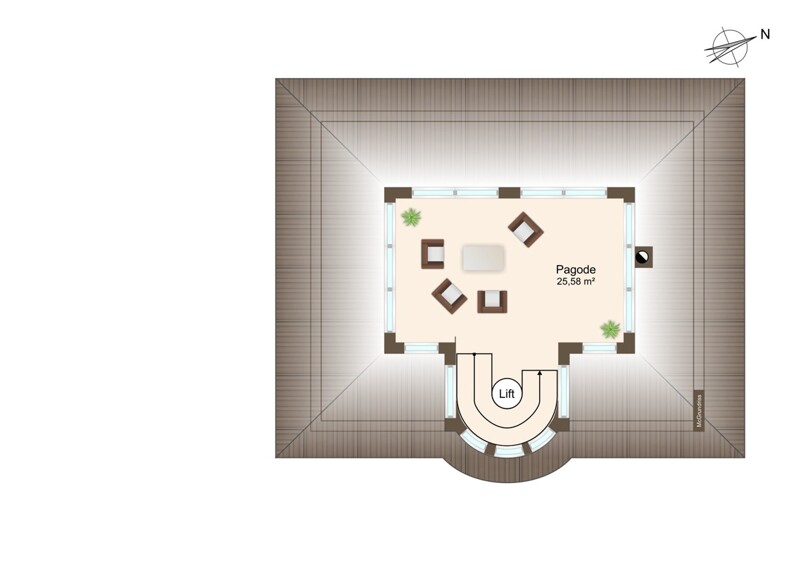 Im zweiten Obergeschoß befindet sich ein weiteres Highlight. Die Pagode - ein weiterer Raum mit circa 25 m² und umlaufenden Fenstern - bietet einen tollen Panoramablick auf den See, den Pendling und das gesamte Thiersee Tal.